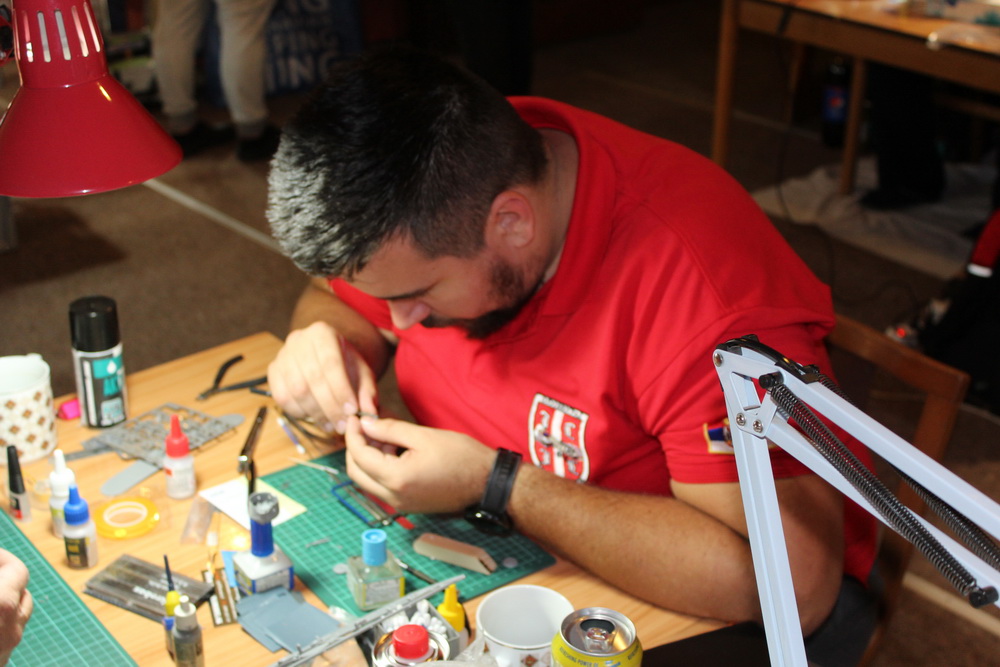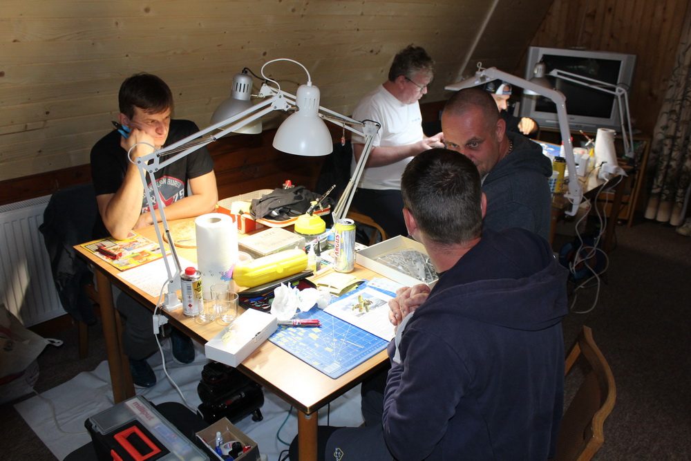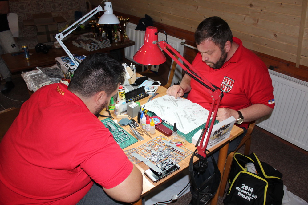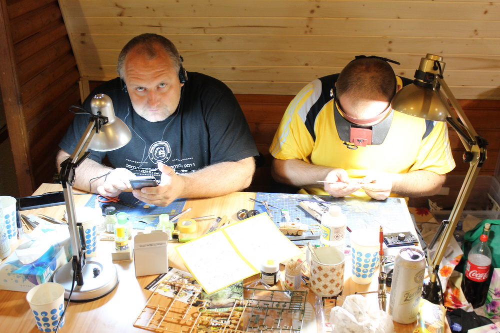 Već oko 8h ujutro, sve ekipe su bile na svojim mestima i ritam rada je rastao svakim časom. Treba uzeti u obzir da se i pored kratkog ali osvežavajućeg sna, umor svakog trena povećava. Za sve to vreme morate biti skoncentrisani i uporni, držati se dogovorenog ali u nekim trenucima i improvizovati iako vam je maketa manje ili više poznata. Bambiju, Dekiju je I-153 bio poznat jer su obojica radili tu maketu ali ne u ovakvim uslovima i okruženju a to je sasvim sasvim druga priča od one kod kuće. Za razliku od toga, profa i ja smo uleteli u područje koje nam nije baš poznato i pritom smo dobili maketu koja je vrlo nova. Kuriozitet je i u tome što su u drugoj auto ekipi bili dvojica vanserijskih maketara (Jan Merhaut aka Honza i Vladimir Šuma) čija je specijalnost upravo automobilizam a jedan od njih je (Honza) i učestvovao u osmišljavanju inženjeringa ove makete te bio „maneken“ Tamije za istu. U duhu samog takmičenja i druženja, dva puta smo pitali i dobili odgovor na pitanja u vezi sa nekim problemima pri sklapanju a tokom samog rada su nas i obilazili te pitali kako napredujemo. Slično je bilo i kod naših avijatičara koji su takođe imali izuzetno jaku konkurenciju u maketarskim timovima koje su sačinjavali iskusni maketari vrlo poznati na planetarnom nivou (bez preterivanja).