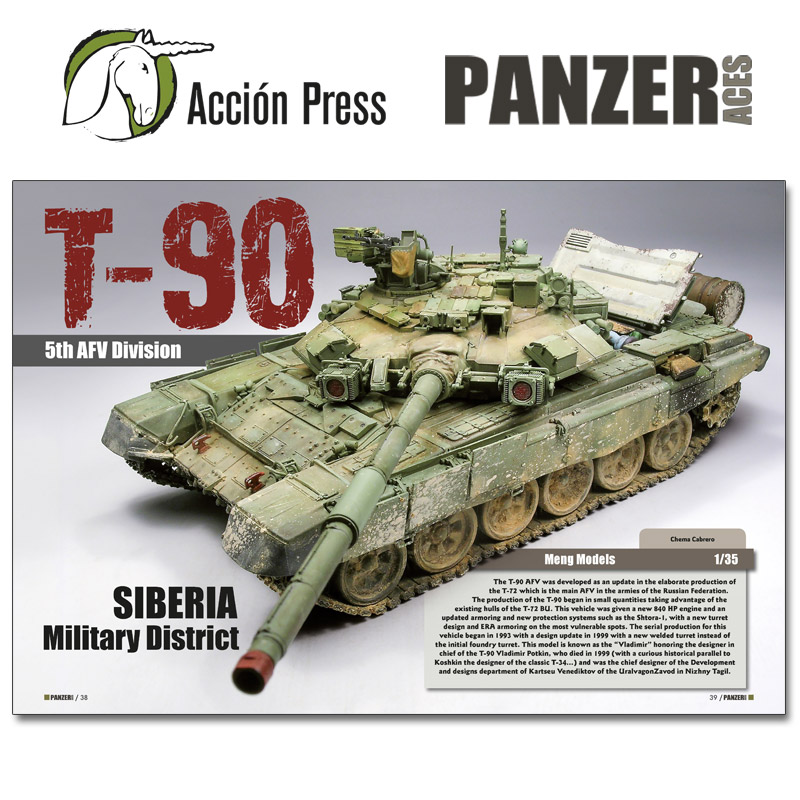 Chema Cabrero is another frequent featured author, and he shows us his particular take on this MBT. The last generation model kits have such a high quality detail, that we can often get spectacular results like this particular Meng product. Chema’s paintjob is based on a light color modulation enhancing the different elements on the turret of this T-90. He has also opted for leaving the engine compartment open which is not that common at all. Also unusual as well is the exclusive use of acrylic paint in this kit.