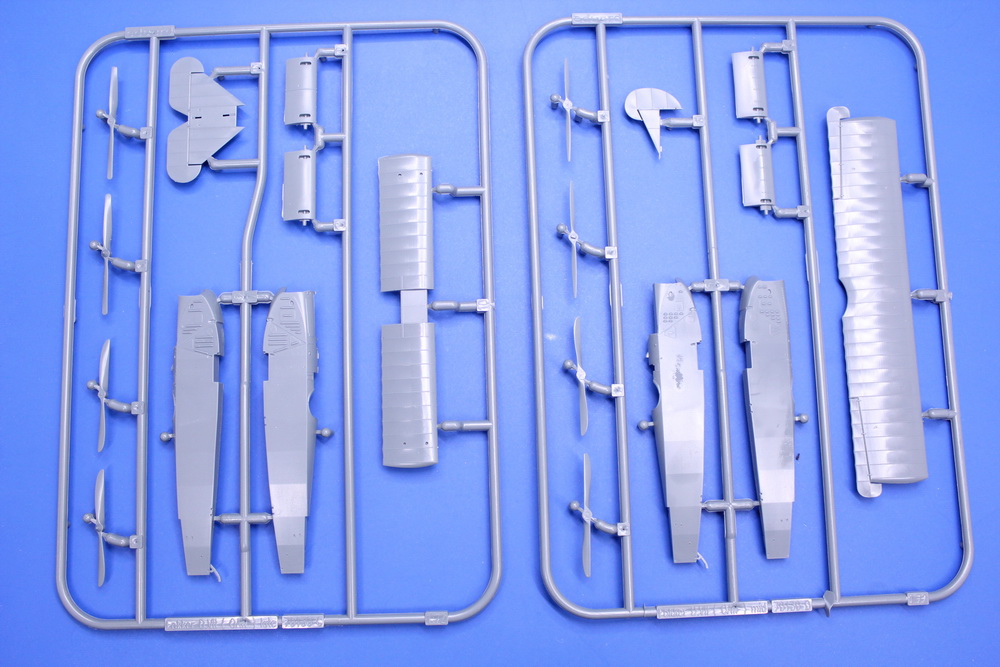 Dakle, predamnom je klot plastika sa izuzetno izlivenim delovima, čak i onim najsitnijim a koji su zaista sitni u 1/72 razmeri. Nakon otvaranja kesice u kojoj su bili delovi, ugledao sam četiri polutke trupa i u momentu sam pomislio da su tu delovi za dve makete. Pogrešio sam, naravno. U pitanju su delovi koji predstavljaju različite trupove sa svim karakterističnim detaljima koji su bili na avionima koji su se proizvodili u Fokeru i u OAW-u. Obzirom da su krila i repni delovi (vertikalni i horizontalni stabilizatori i kormila dubine i pravca) bili isti, na trupovima tj. na njihovom motorskom delu su bile karakteristične razlike koje su (sudeći po dostupnim crtežima i fotografijama) vrlo vreno prenete i na maketu. Ono što me je takođe pomalo zbunilo u početku je prisustvo velikog broja, na prvi pogled, istih delova. I tu sam pogrešio, ponovo. Ne radi se o duplikatima nego o delovima koji se razlikuju po detaljima te maketaru daju mogućnost da urade zaista vernu maketu određenog aviona. Ti prisutni „duplikati“ su: