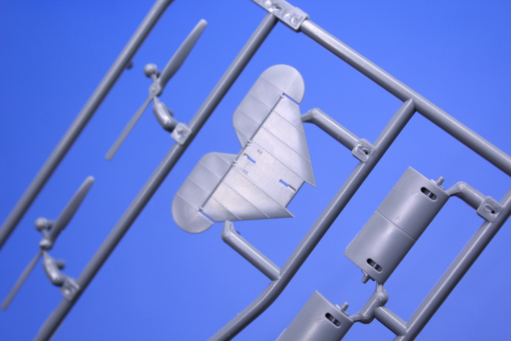 Svi delovi su izliveni vrlo precizno bez vidljivih ostataka livenja, biću slobodan da kažem i da nisam primetio bilo šta da je predimenzionisano (što je vrlo često u ovoj razmeri dvokrilaca sa upornicama). Na krilima je platno vrlo uverljivo zategnuto preko rebara a na polutkama trupa se odlično prelama svetlo preko vertikalnih rebara konstrukcije trupa.