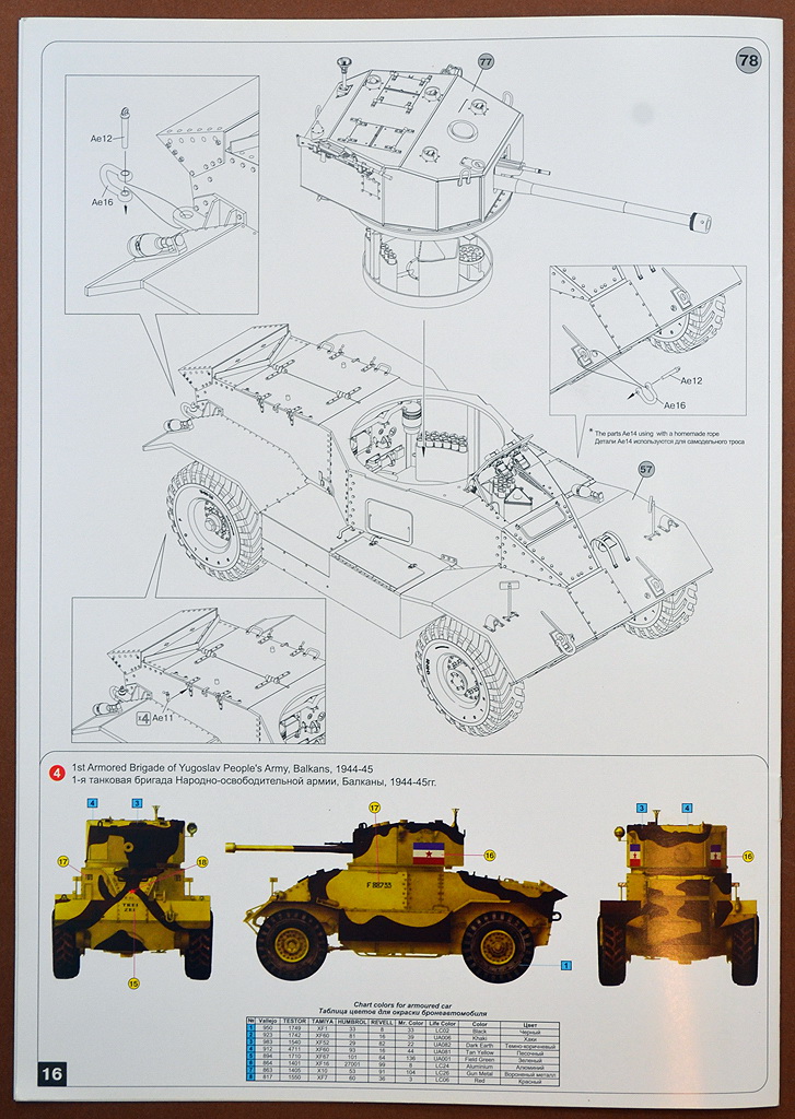 Sastavnica sadrži 78 koraka sastavljanja raspoređenih na 15 stranica kvalitetne štampe, tu je još i uporedna tabela sa 8 najpoznatijih proizvođača boja. Četiri šeme farbanja date su u punom koloru i to :