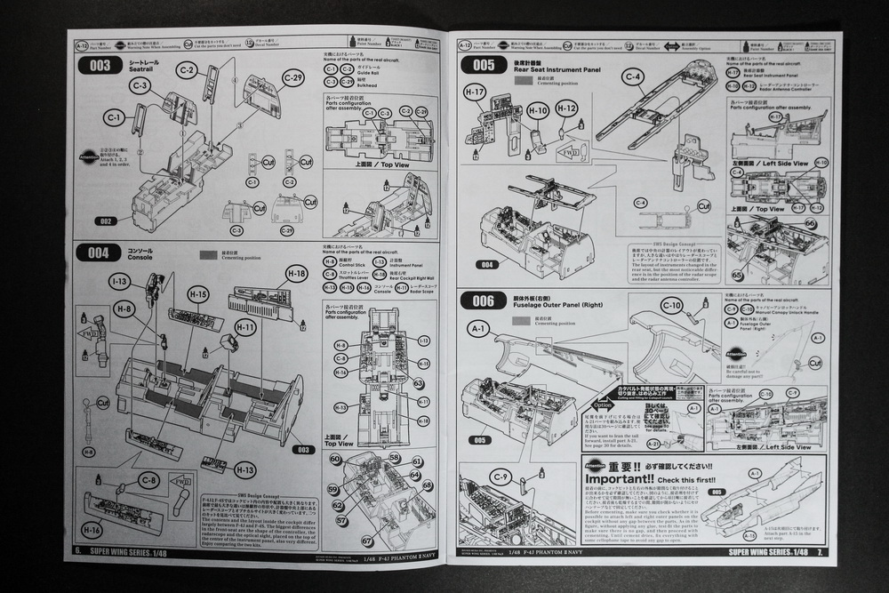 Pored plastike u kutiji se nalazi i sastavnica u crno-belom A4 formata sa izuzetno detaljnim objašnjenjem načina za sastavljanje modela, kao i dodatnim informacijama o samom avionu uopšte. Osim gore navedenog u kutiji se nalazi Zoukei Mura katalog u punom koloru i detaljno uputstvo za postavljanje dekala.