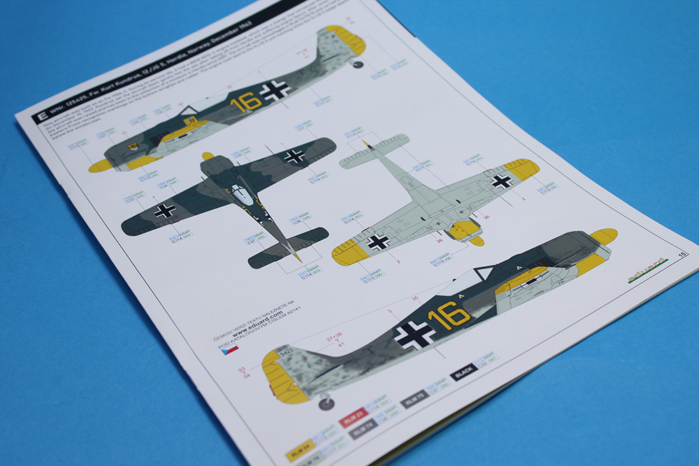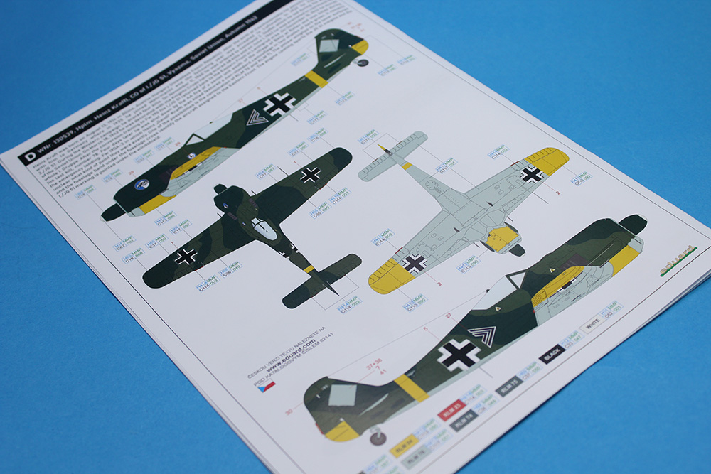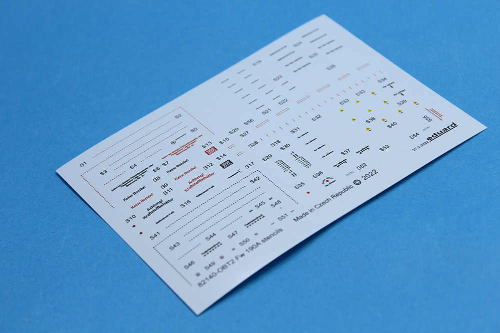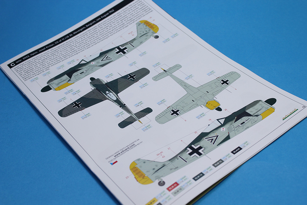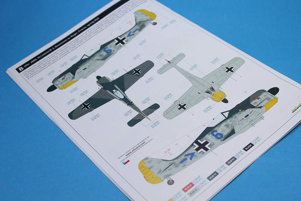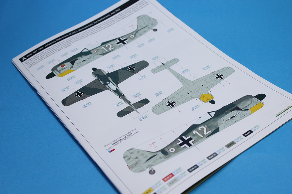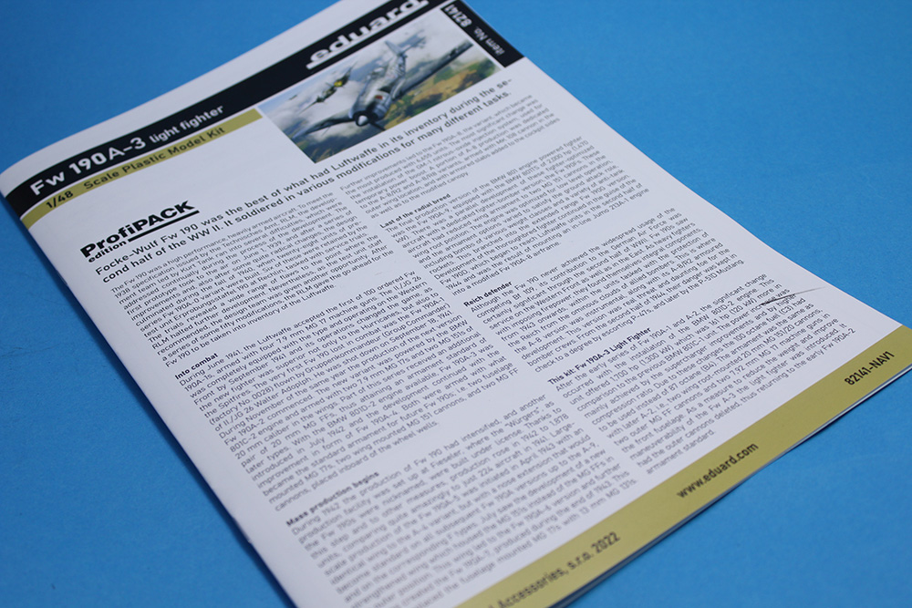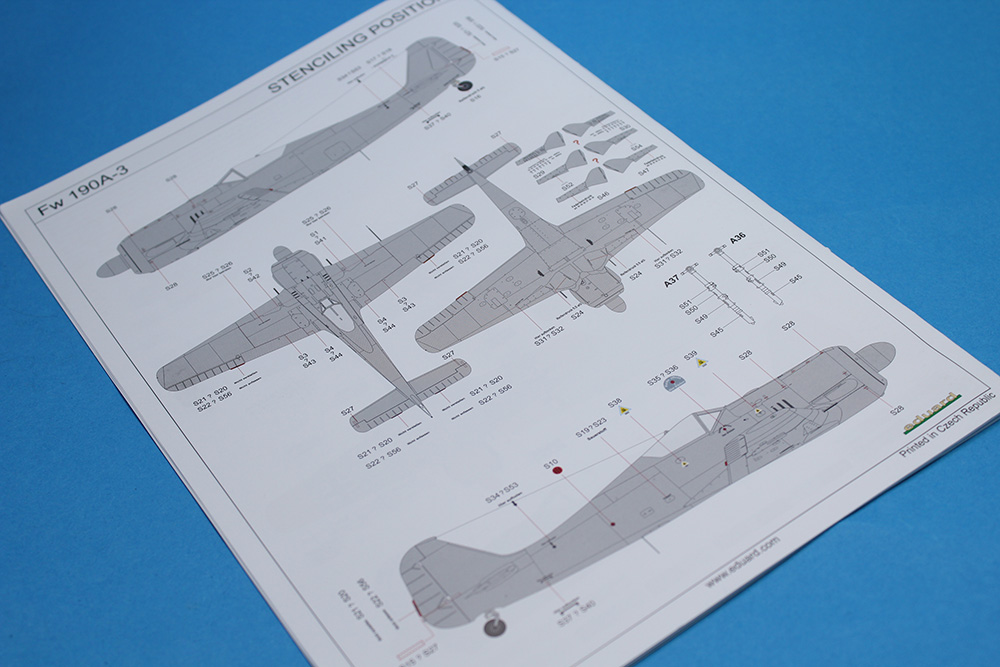 Češki proizvođač Eduard nas je obradovao maketom ovog sjajnog lovca u razmeri 1/48 te je na taj način nastavio seriju odličnih maketa ove vazduhoplovne legende. Obzirom da sam imao priliku da sklopim nekoliko maketa ovog lovca različitih varijanti (od ovog proizvođača), primetio sam da su se ljudi iz Eduarda zaista potrudili da svaku varijantu urade/predstave sa svim onim pojedinostima koje su za nju bile karakteristične. Tako je i sa ovom maketom A-3. Glavni detalji ove A-3 varijante koji su vidljivi su krilo sa dva topa MG151/20 u korenima oba krila i dva mitraljeza MG17 u nosnom delu trupa iznad motora. Zbog toga krila su bez izbočina na gornjakama izuzev dela uz sam trup gde su se nalazili pristupni otvori pomenutih topova MG151/20. Trup je „kraće“ varijante koji su bili karakteristični za te ranije verzije Fokevulfova. Detalji na krilima i trupu su zaista odlični, sve panelne linije, riveti, otvori i ostali detalji su urađeni veoma lepo i precizno. Želim da napomenem da su ramovi sa delovima krila i trupa sasvim novi tj. urađeni su novi alati za ovu maketu. U ProfiPACK kutiji (#82141) se pored plastike nalazi odlična sastavnica koja je vrlo informativna i sa odličnom štampom, set fotoecovanih delova kojih je preko trideset a pokrivaju instrument table, pilotske gurtne, nožne komande pravca i još dosta detalja u kabini i na trupu (pokazivači izvučenog stajnog trapa na gornjakama krila i anetene) te set maski na kabuki papiru za lakše farbanje prozirnih delova (vetrobrana i kliznog poklopca kabine) i točkova. Ram sa prozirnim delovima je takođe odlično izliven, delovi su bez distorzije ili bilo kakvih nepravilnosti a prozirni paneli su baš kristalno čisti. Rasklop cele makete je standardan i sudeći po ranijem iskustvu i ovome što sam dobro izprevrtao tokom pregleda mislim da će sklapanje makete ovog lovca biti vrlo opušteno. Probe sklapanja glavnih sklopova na suvo su mi još više potvrdile prethodnu tvrdnju u vezi sa sklapanjem ali i potpalile maketarsku maštu. A svemu tome su svakako doprinele i šeme/oznake za pet mašina koje su bile u upotrebi u lovačkim jedinicama Luftwaffe. Set dekala je standardno odličan po pitanju boja, štampe i izgleda kako na glavnom tabaku sa oznakama tako i onom manjem na kojem su servisni natpisi (stensili). Pet mašina koje su predstavljene u ovoj Profi PACK kutiji su: